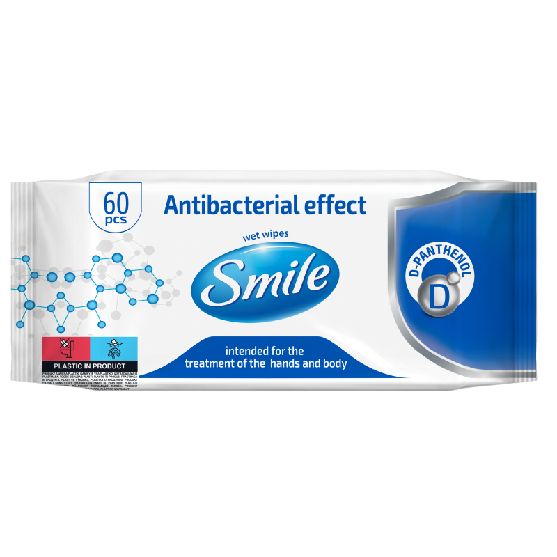 Smile antibacterial wet wipes, panthenol, 60pcs