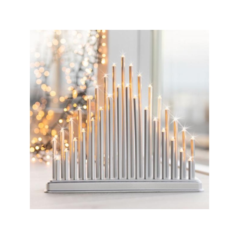 Prime Light küünlajalg 33LED, patareitoitel, hõbedane