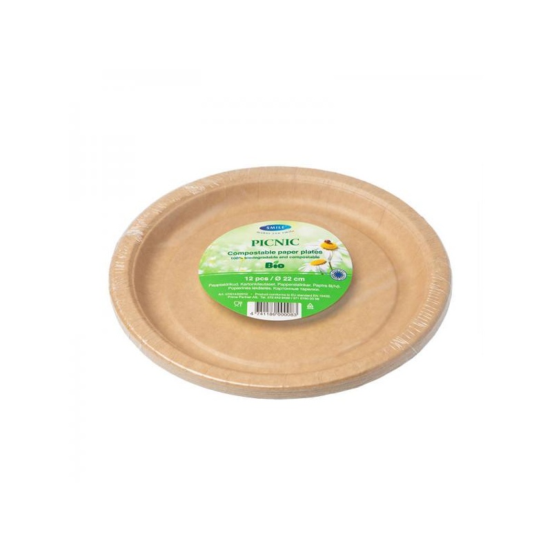 Smile papptaldrikud Ø 22cm, Kraft, 12tk